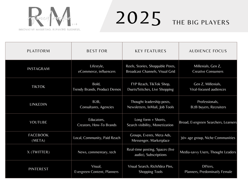 Social media isn’t what it was even six months ago – new platforms are popping up, algorithms are shifting, and audience behavior is constantly evolving. What worked in 2022 might be irrelevant in 2025. For brands, that means it’s no longer about being everywhere – it’s about being in the right places. In this post, we’ll break down today’s major platforms and help you figure out which one aligns best with your audience, content style, and business goals. Here is a breakdown of the key platforms in 2025.